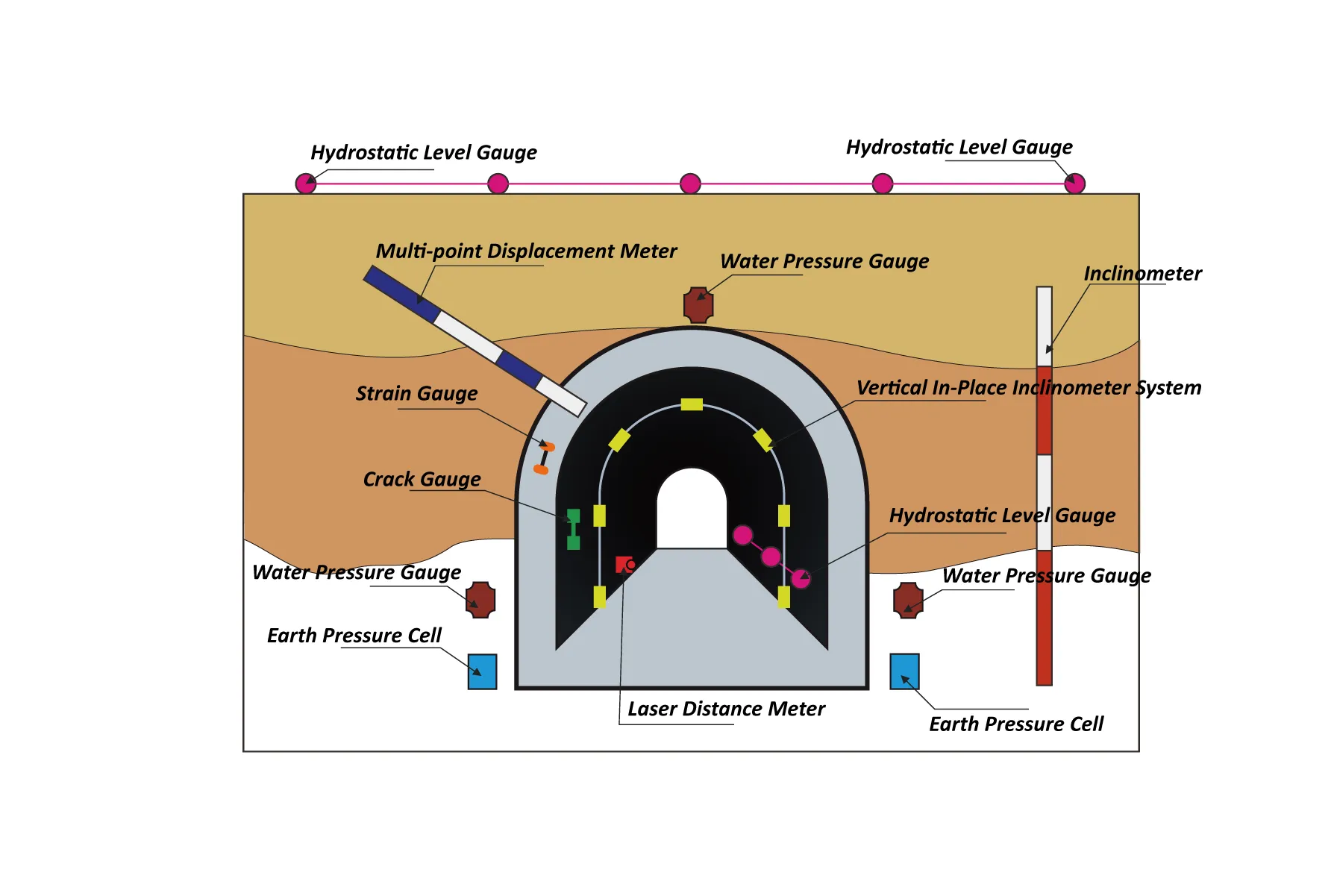 Slijeganje tunela, praćenje konvergencije, pukotina u tunelu, praćenje strukturnih deformacija, itd.